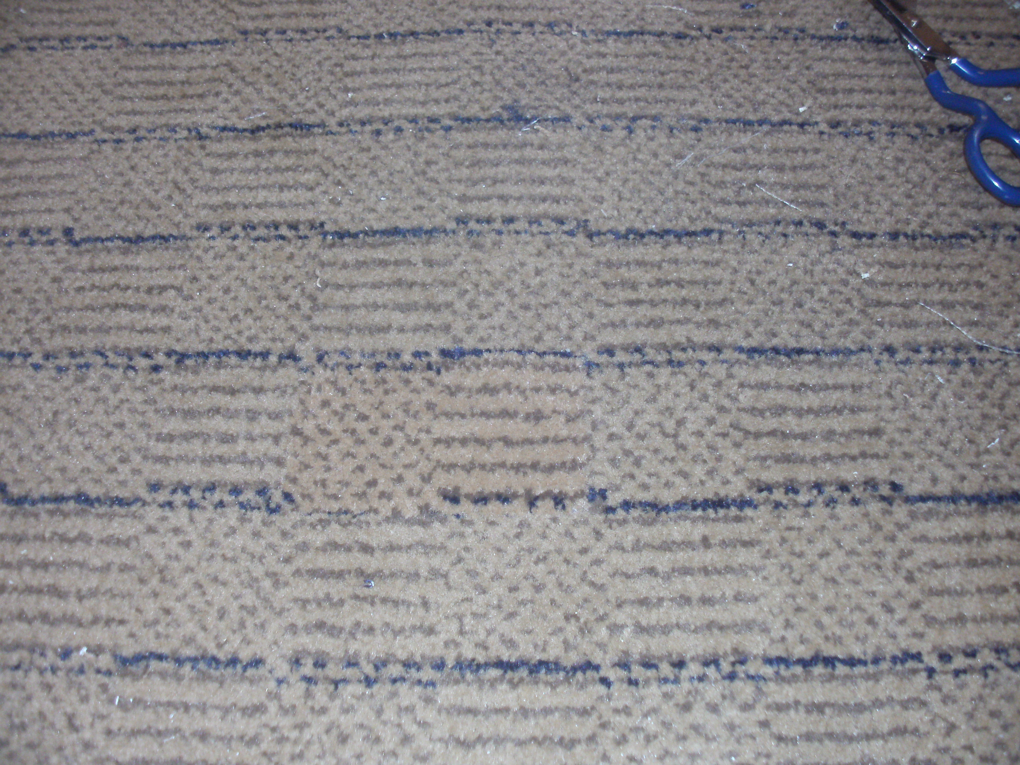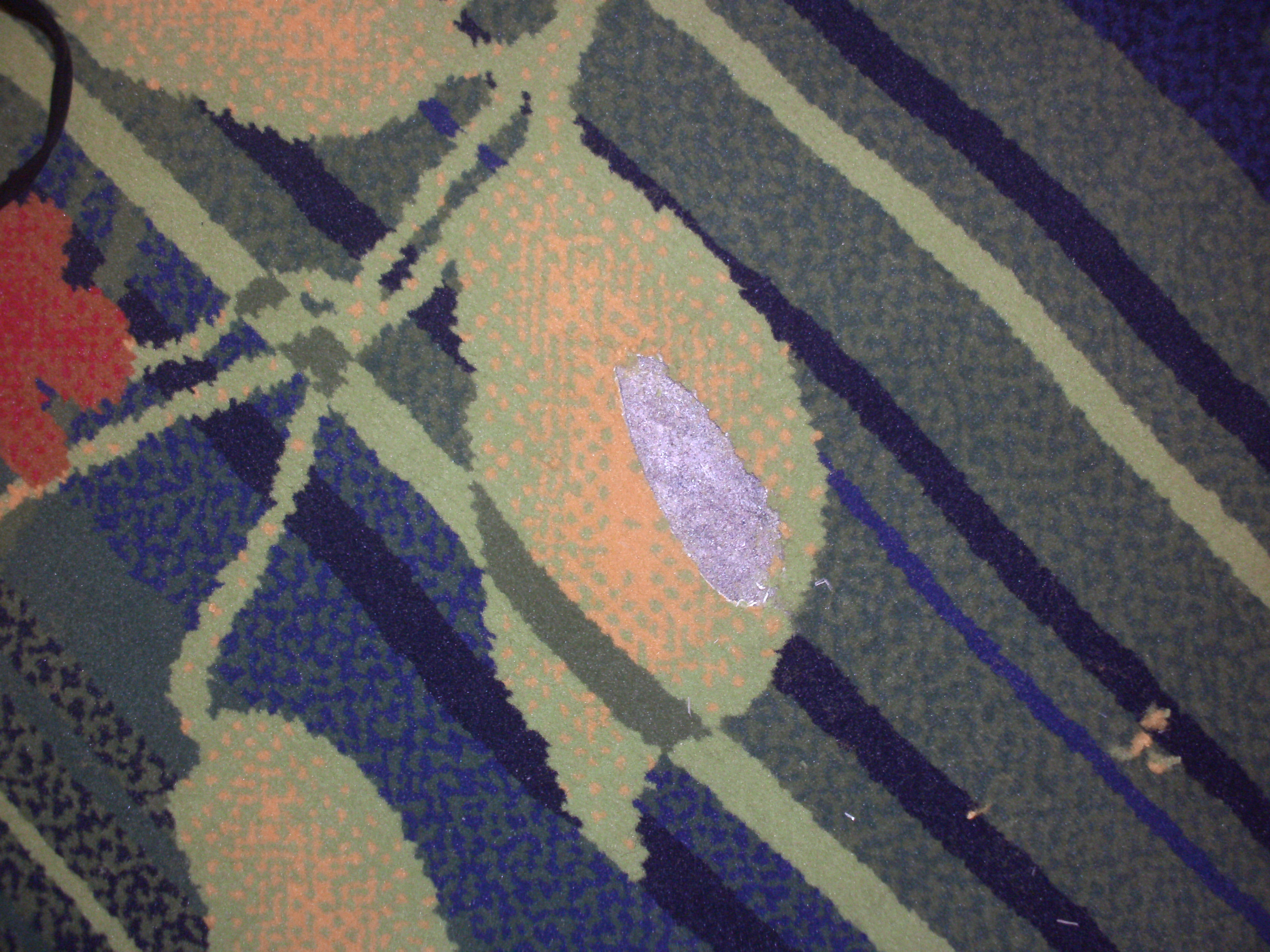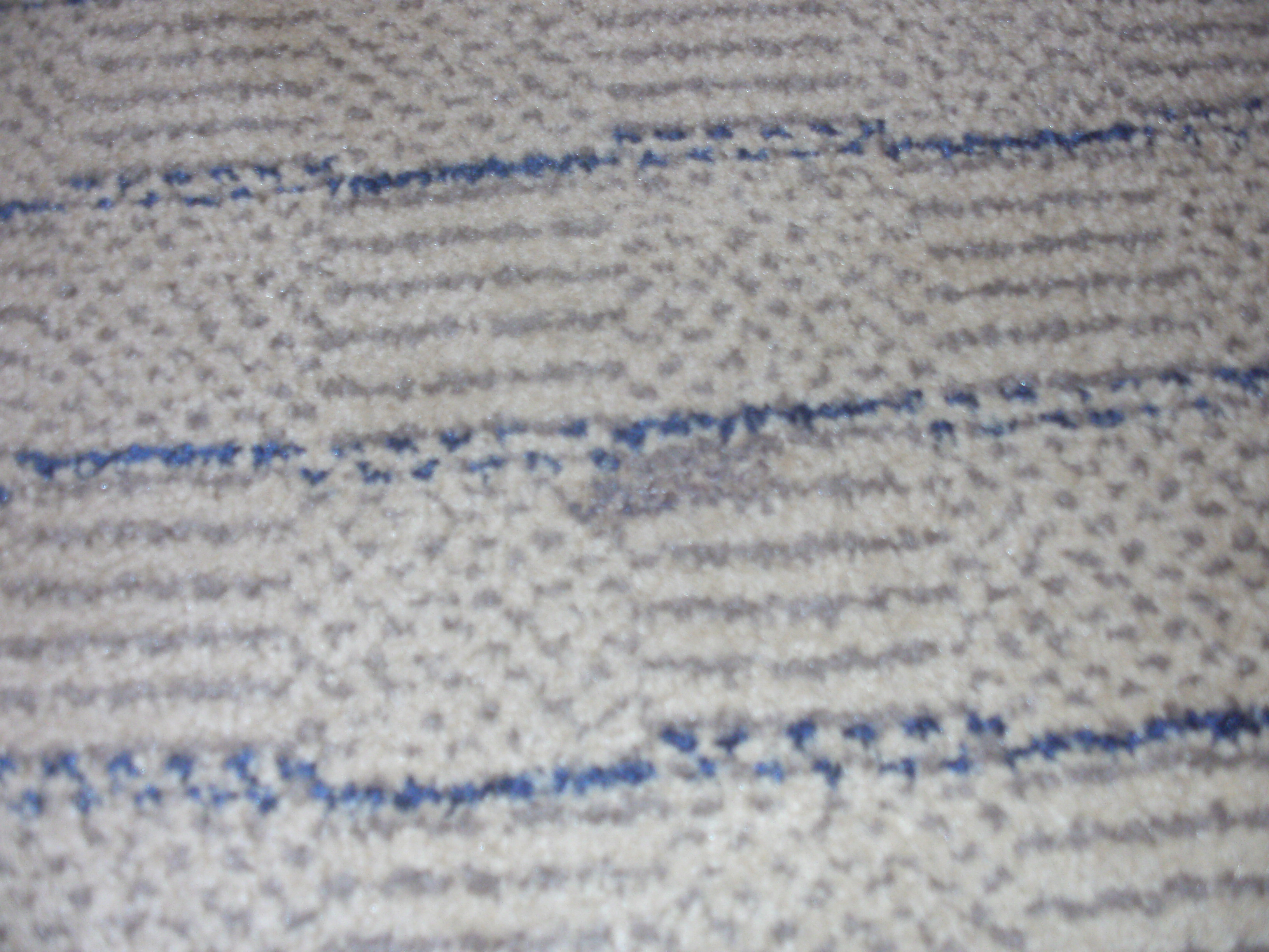 Before carpet repair of candle wax in a room at the Jameson Inn