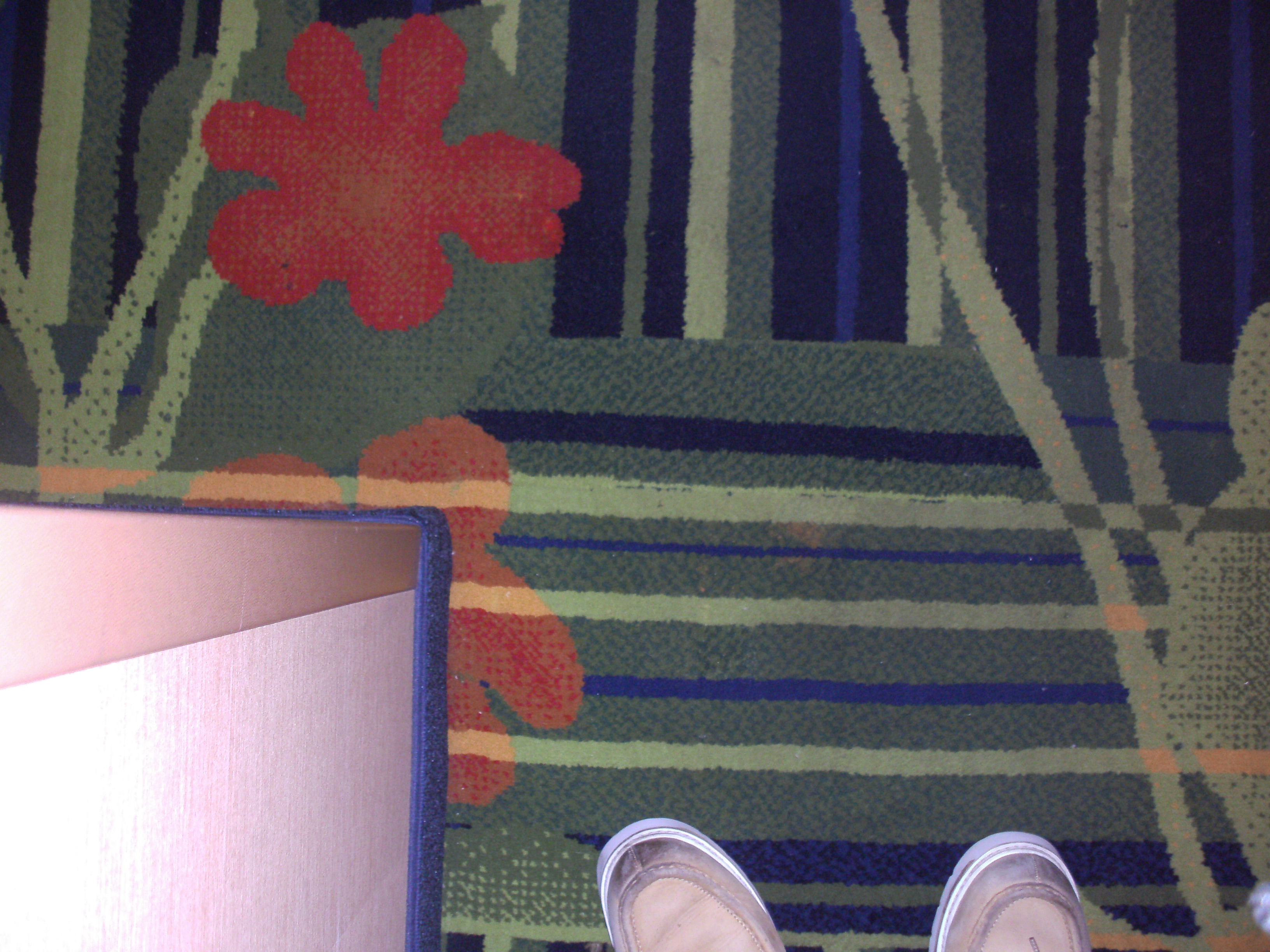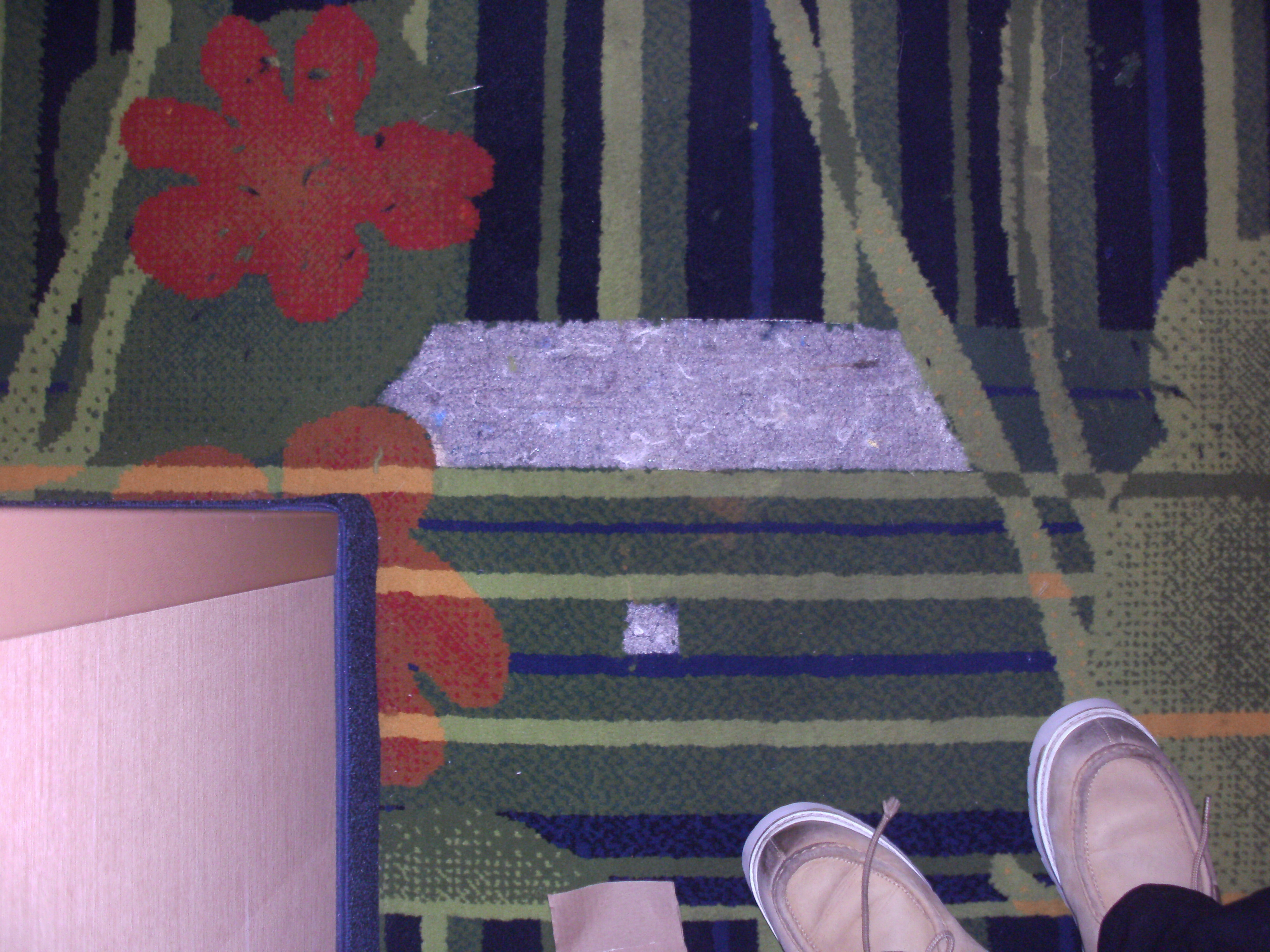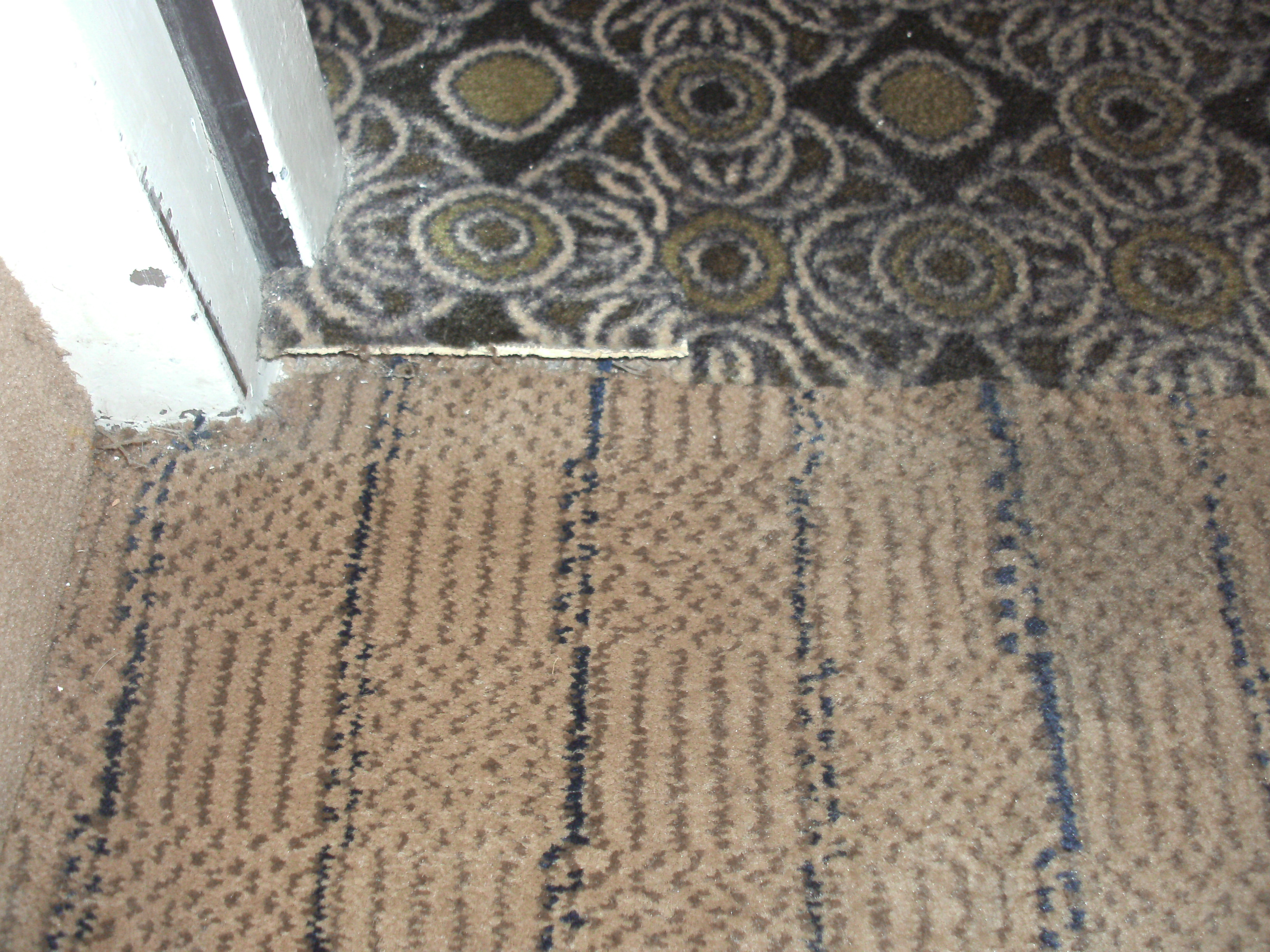 Before carpet repair of candle wax in a room at the Jameson Inn