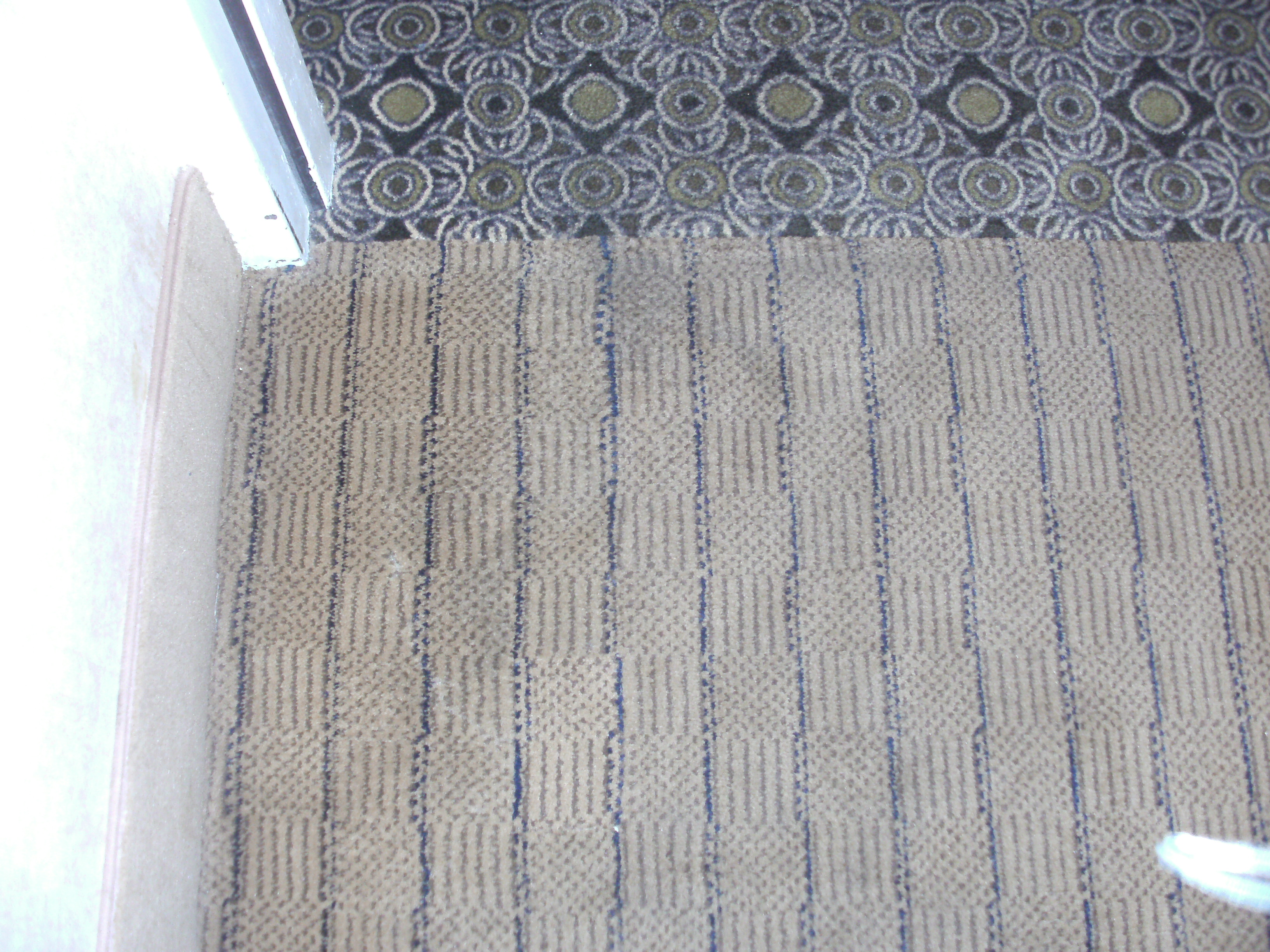 Before & After Carpet with cigarette burn at the Jameson Inn was repaired